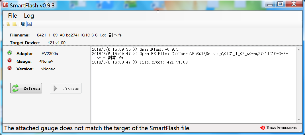 我使用 win7+EV2300+smartFlash V0.9.3给bq27411G1C 进行OTP编程,安装smartFlash V0.9.3后,