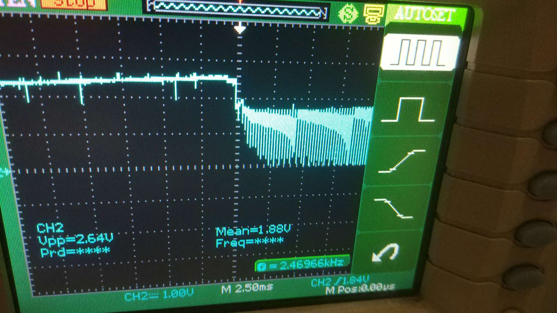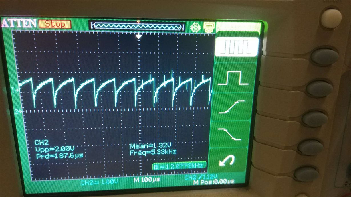 请问为什么我的波形会是这样呢? 我用PWM直接输入输出的方式,出来的波形也是这样,是哪里出错了吗?