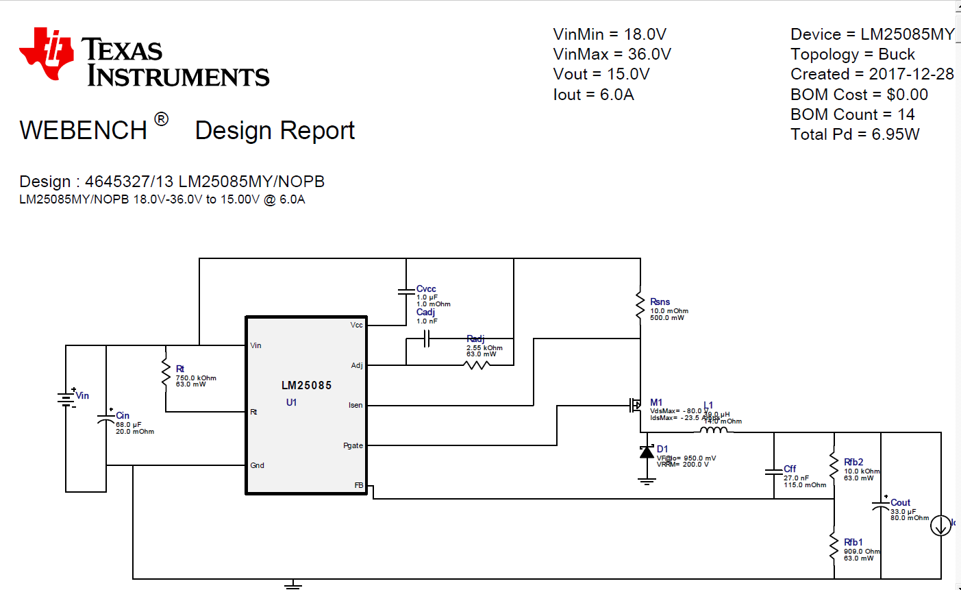 设计输出电压18-36V,额定输入28V。输出15V,电流6A.RT电阻750K.根据公式计算频率为128KHZ,但是实测频率只有37KHZ。而且开通时间Ton也与计算值不符,实测开通时间为15US左右。计算的开通时间在4.5us左右。图中红色框内的CRC三个电阻电容并没有焊接,而是焊接的后面的Crr电容33nF.最后面的滤波电容WEBENCH推荐值为33uF.实际焊接的大了一些。33UF并33UF并10UF,但即使把最后的输出电容拆下来对频率并没有产生影响。为什么频率不对了?