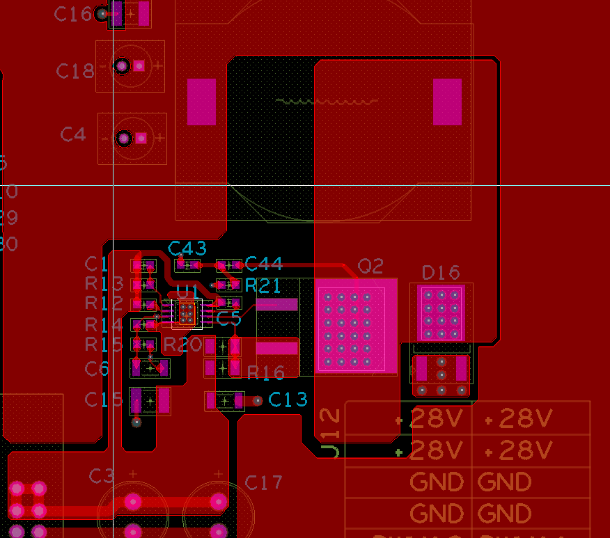昨天还有个情况忘记说了,就是电压调整率很差,额定输入28V,输出15V,带满载后(6A);输入Vin28V降到24V时,输出就已经支持不住15V了,24V以下的输入,输出就低于15V了。开通时间Ton也不随输入电压的升降变化。