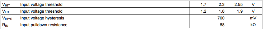 rising threshold of 2.3 V and a falling threshold of 1.6 V.