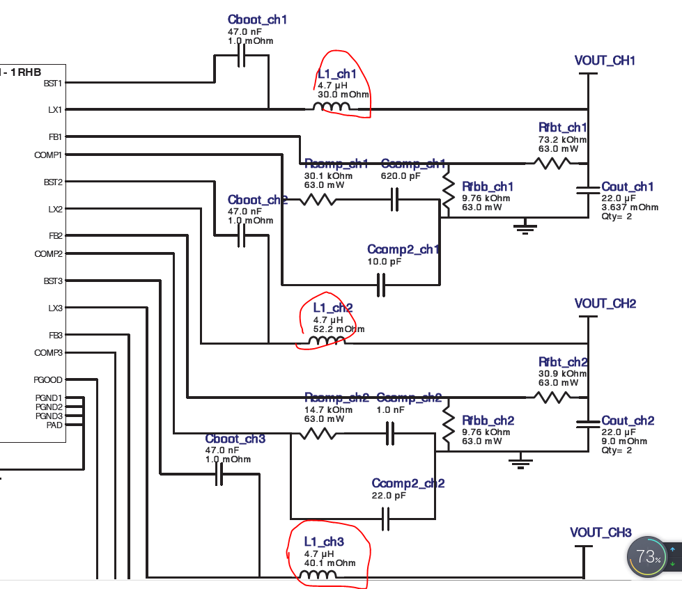 一路为:输入12V,输出5V(3A),2.5V(2A),1.8V(2A);