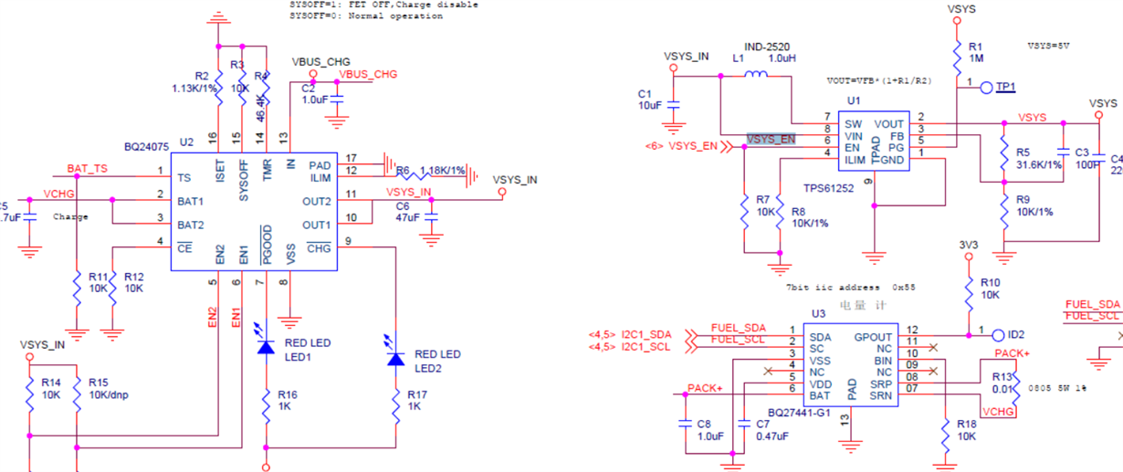 使用BQ24075+TPS61252 实现锂电池充电和供电方案。如图: