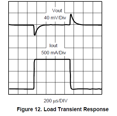 这个就是负载瞬态跳变导致的输出电压变化, 和你的情况一样。但是如果电压变化超过500mV, 那就由问题的,而且你的负载变化只是200mA。