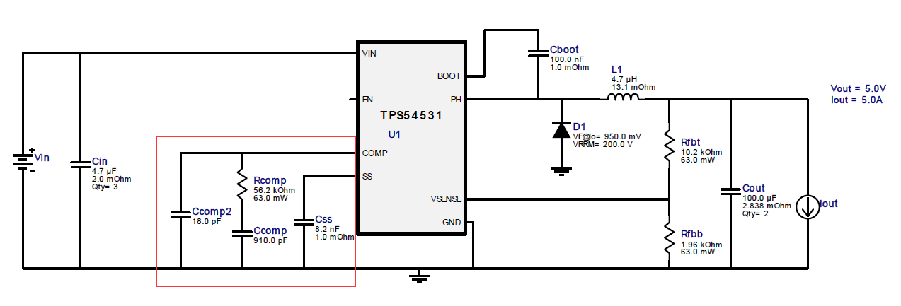 TPS54531中输入都是24V,一个输出4.2V 3A ,另外一个输出5V 5A,使用TI的仿真软件后,发现有些参数不一样。想看看能否统一。谢谢!