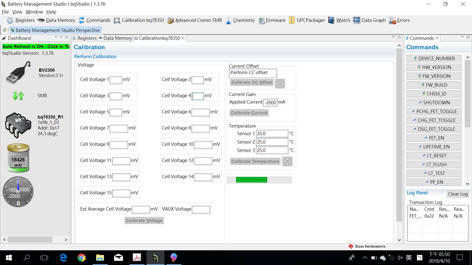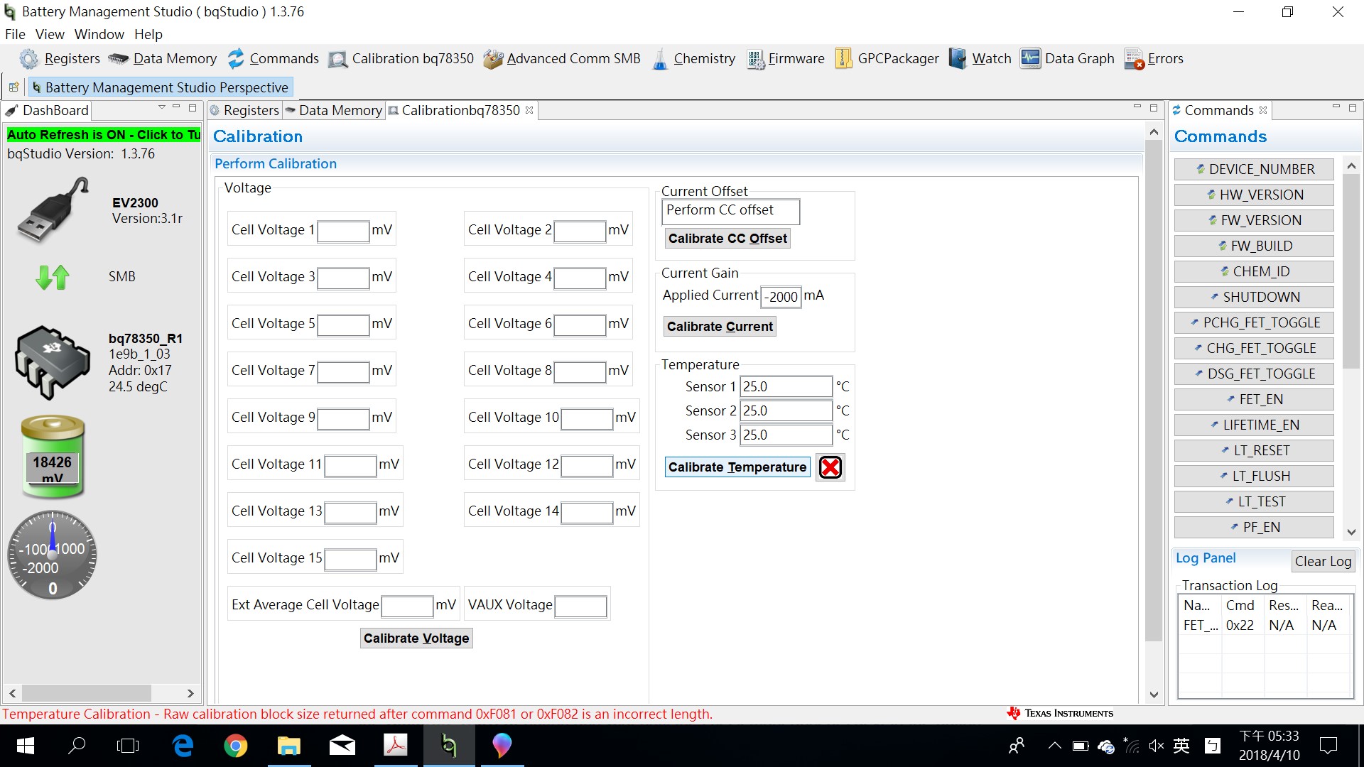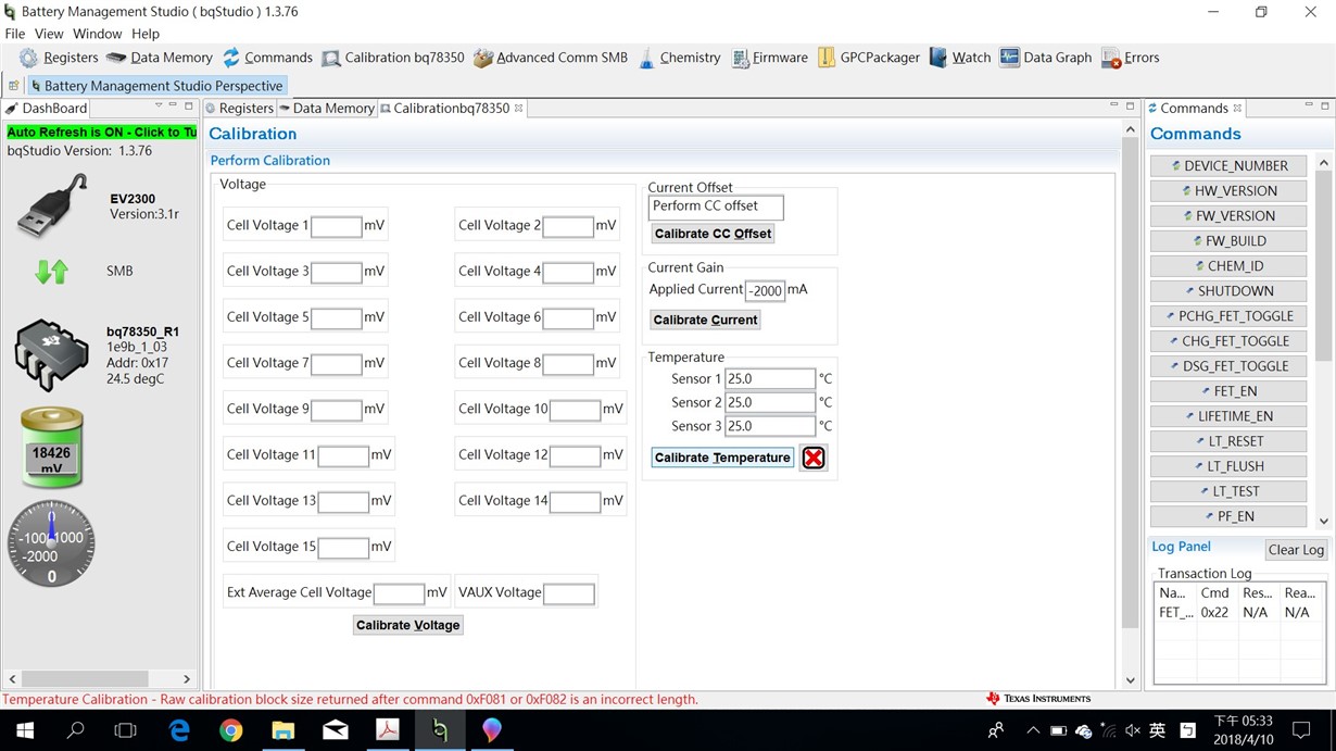 使用Battery Management Studio該程式做溫度與CC offset calibration都出現如下錯誤訊息