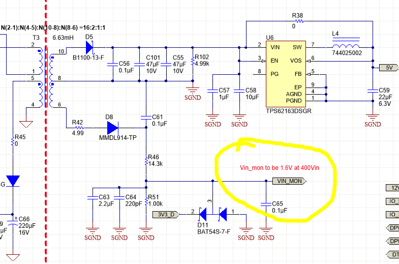 如图的VIN_MON端口,其作用是什么呢?这个端口只能放在辅助电源的次边输出端吗? 辅助电压是变化的,次边输出一直稳定在一个值,这个电路是怎么检测输入电压的呢?