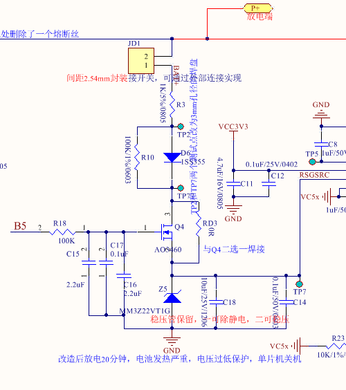 将R3阻值由330欧姆变为1K,用0欧姆电阻RD3将Q4短路,这样在RD3焊接的情况下,Q4左端的电路将全部不用焊接,一定程度上可降低成本。
