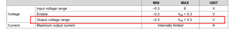 另外,问下手册上输出电压引脚的范围Vin+0.3中,Vin是当前输入电压吗?比如输入3.7V,输出引脚最大支持电压4V,输入0V,输出引脚最大支持电压0.3V。