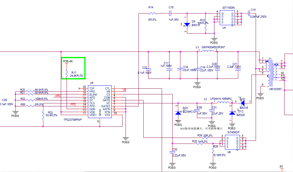 我们目前一款产品用个的TPS23756,在低温(-40度下),48V输入下,TPS23756的VC电源会偏高到20V左右,直接导致VC的稳压管击穿,但是在常温下48V供电电压会在15V左右,下面为我们的原理图,目前我们的新产品被卡在这个问题,请协助大神帮忙做下确认