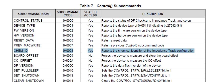 对于bq27542-G1的CHEM_ID设置,TI有没有一份电池化学ID列表供我们配置参考