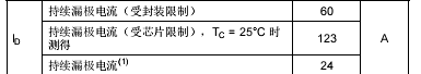 如下图所示,CSD17581的ID有以下几个值,请问下这几个的区别?如123A是表示在25°时能通过的电流吗?