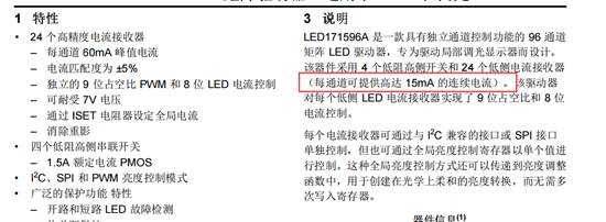LED171596A写了每个通道60mA的电流,但又写了15mA的电流,请问这个以哪个为准?