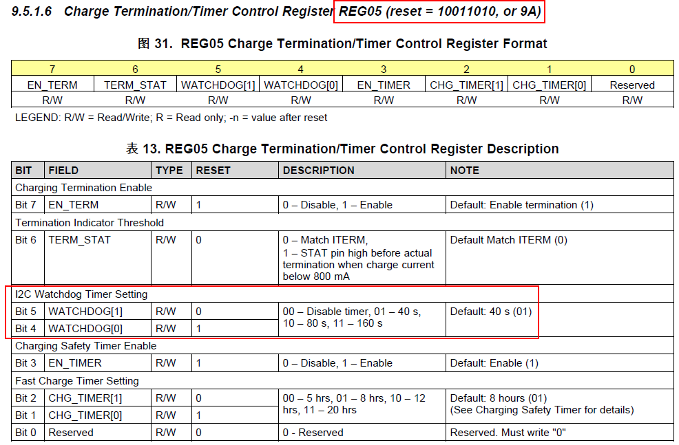 通过上述步骤后,成功修改了24192的REG2和REG3寄存器,也达到了减小充电电流的效果。但是每次完全断电再重新上电后,24192的寄存器被恢复到默认值,之前的修改全都失效。