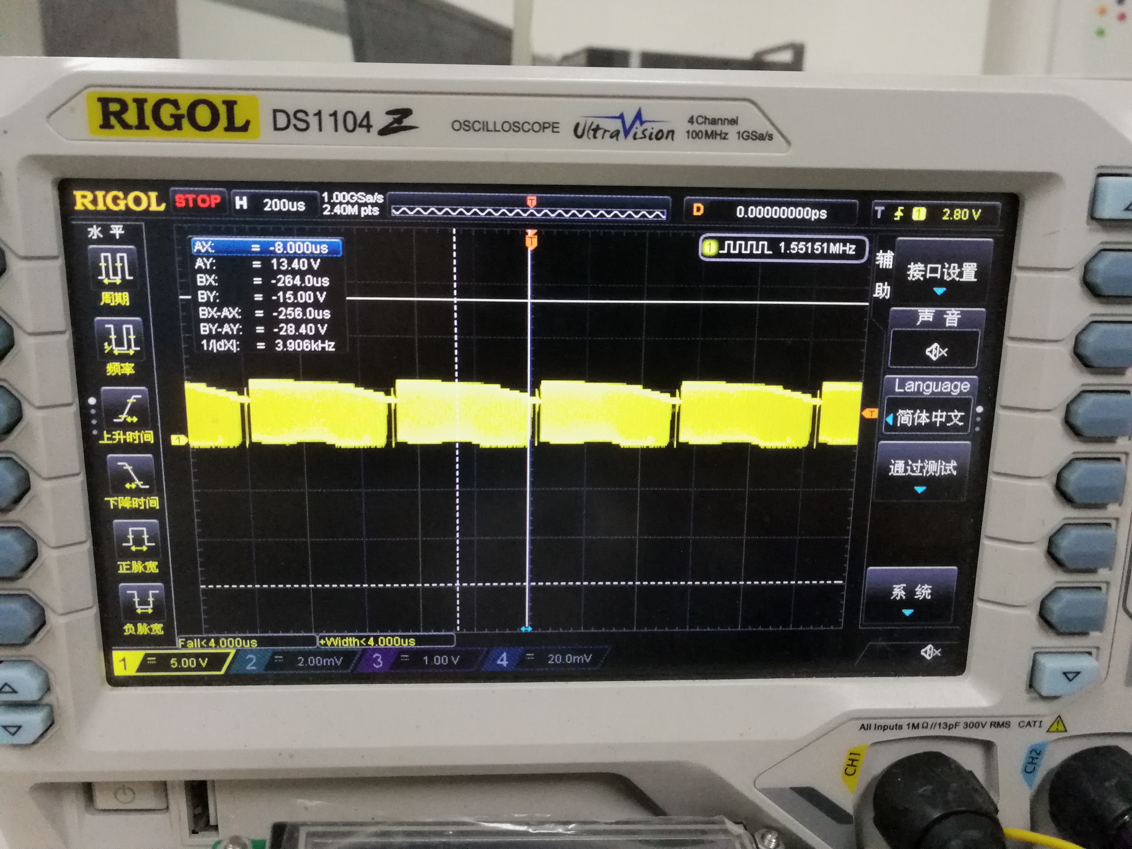 SW出来的不行不稳定,缩小至200us可以看见是如下的波形