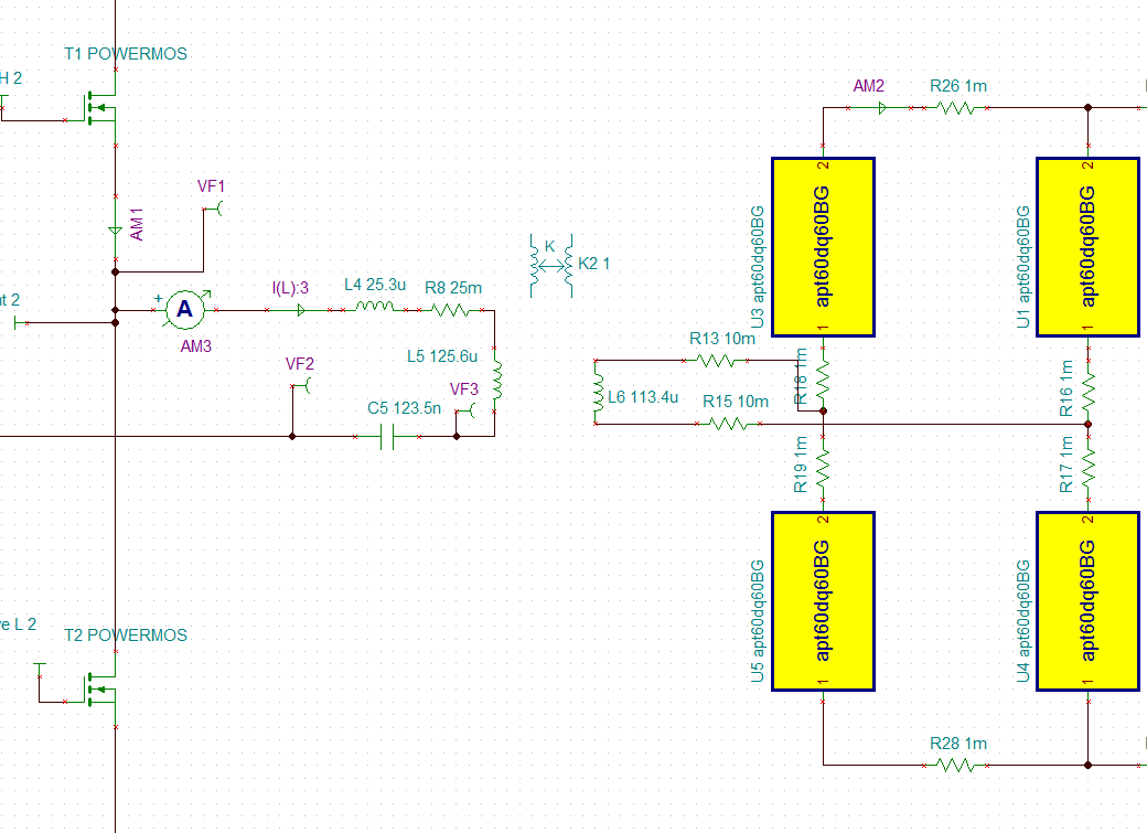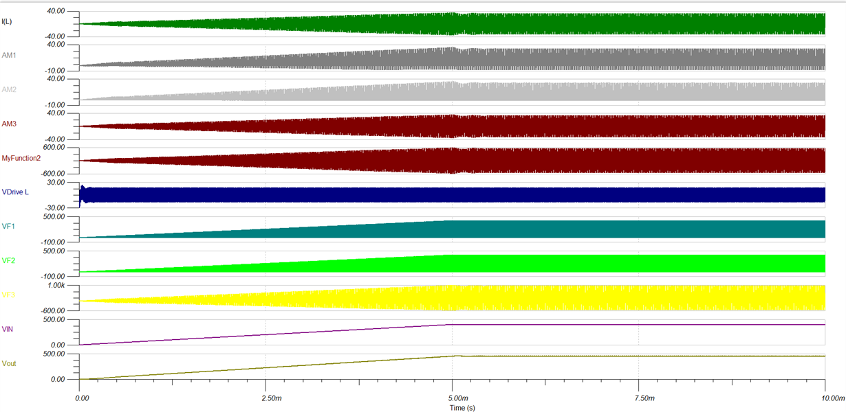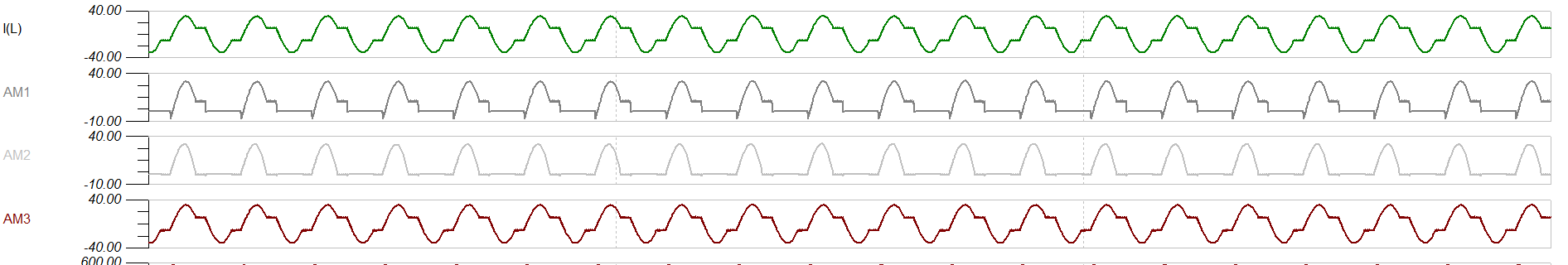 下图放大以后看可以看到电流表输出的波形AM3依然是瞬时值电流 不是有效值电流