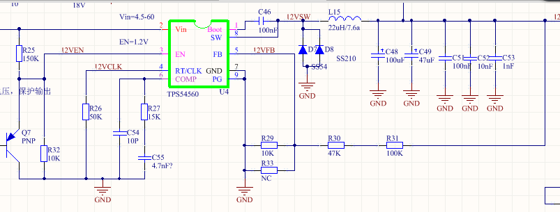 TPS54560带载能力弱,40毫安,再大就没有输出了