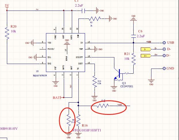 但是我如果不用热敏电阻,把R5/R6改成200K/49.9K.充电是正常的。