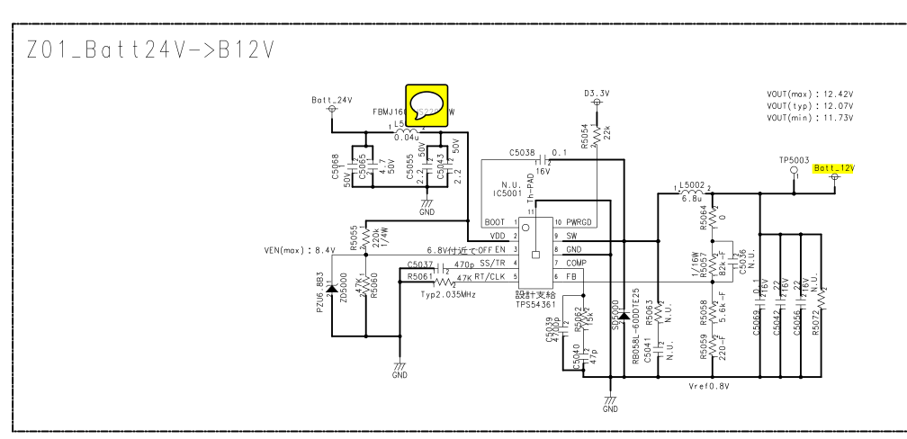 正在评审24V电源应用于ADAS:TPS54361QDPR,请您对附件中的回路图进行检查,特别是EMC设计(辐射、传导)和部品选型,如有不合之处,请详细明示,给出对策,谢谢。