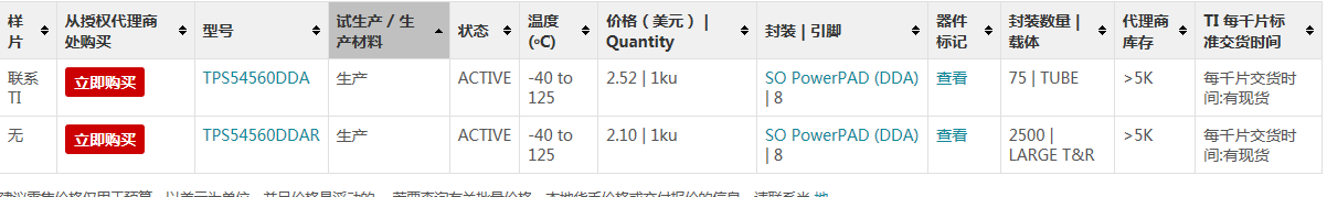 TPS54560DDA的DDA代表封装,后面的R代表装盘信息,R指的是每2500颗芯片一卷,TPS54560就是指芯片