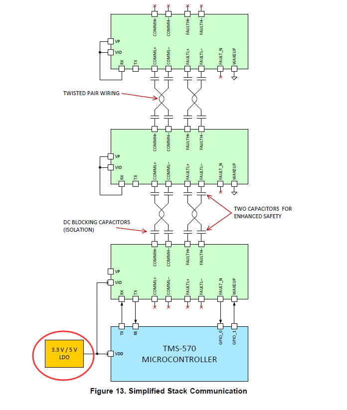 1、如下图所示,455a在菊花链连接中最底下一片供电采用外部LDO,而其他片子使用自带电源。最底下一片是否可以不单独供电同样采用455a自身的VIO?