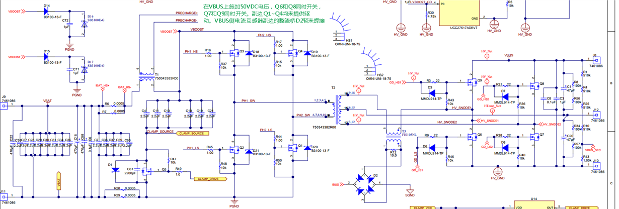 2、在Q6和Q8开通瞬间,Q9漏源极电压出现2倍于VBUS的电压尖峰,为何?