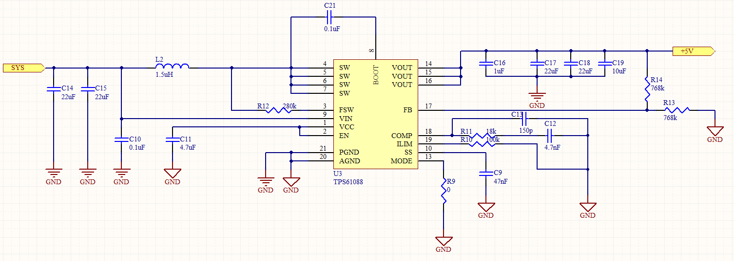 输入:3.8V 输出:3.5V VCC电压:3.7V 按照原理图,输出电压应该在5V左右,第二张图的电感我放在底层,所以看不到焊盘,麻烦看下是哪里的问题,谢谢!