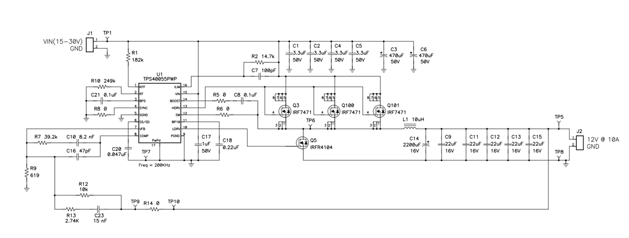 各位好,如题,现在做了一个TPS40055的BUCK电源,电压没办法升到24V,求各位知道的人帮忙解释一下。