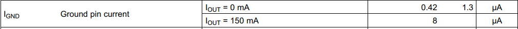 Ground pin current在待机2uA电流情况下,功耗应该也增加不了多少吧?IOUT = 150 mA时才8 μA。