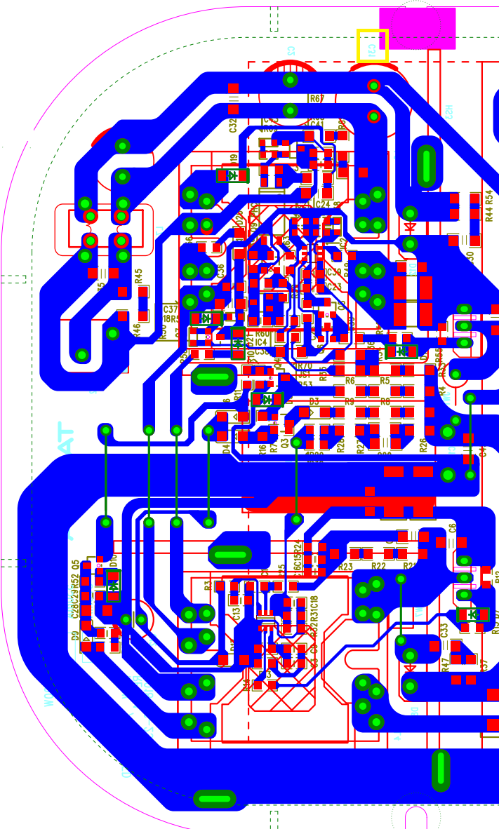 调整C31(上图黄框里面)的GND接线后有所改善,但问题依然没有完全解决。