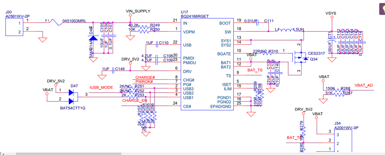 现象:电池管理芯片不能正常给锂电池BAT1/BAT2处充电,