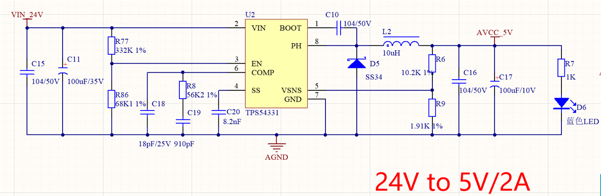 现在我慌得一逼,望高人解答。或者有没有推荐的别的方案。要求是24V输入,5V 3A输出, 输入电压低于20V停止输出。
