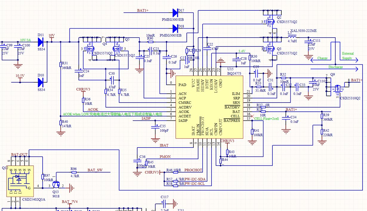 1,2节18650电池串联;充电器电压12V2A,经过DC-DC转换到10V;电路如下所示:
