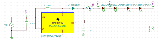 1、TPS61040用作LED恒流驱动器时,电路如下图:
