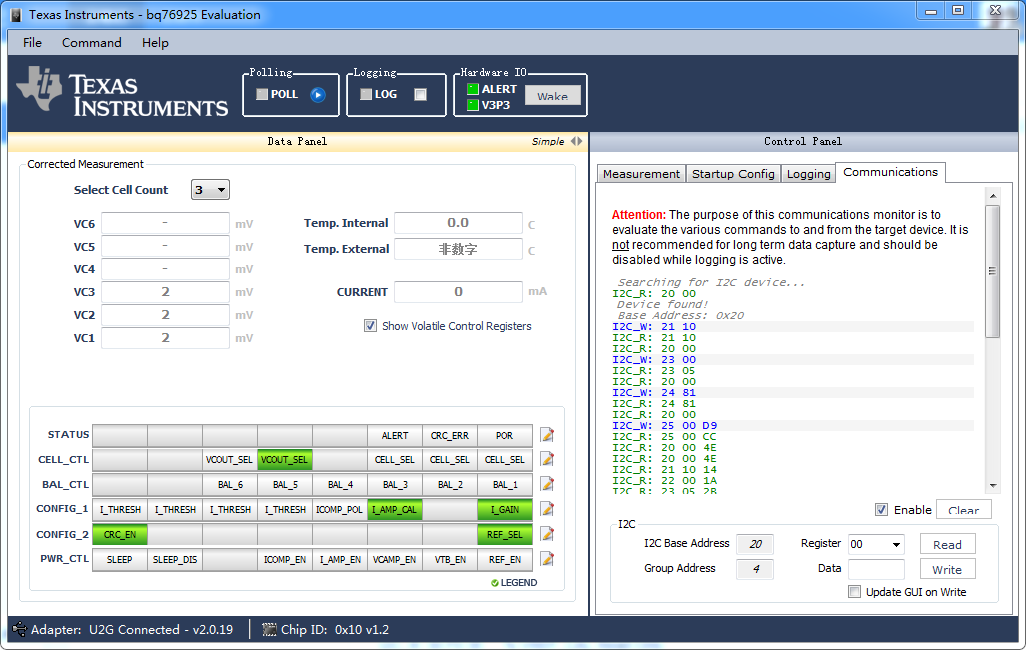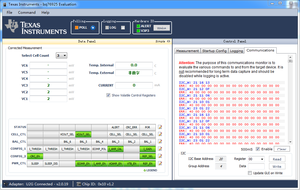 BQ76925evm开发板通讯错误: