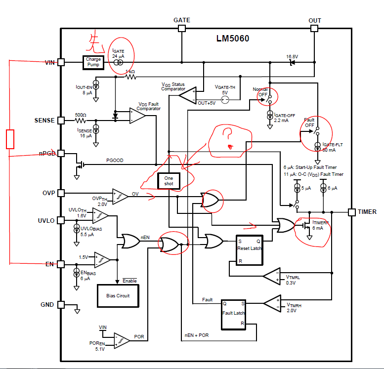 LM5060逻辑框图中的OneShot部分是怎么工作的?该怎样理解?