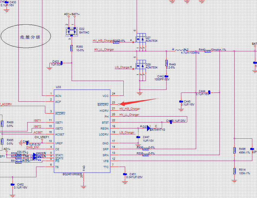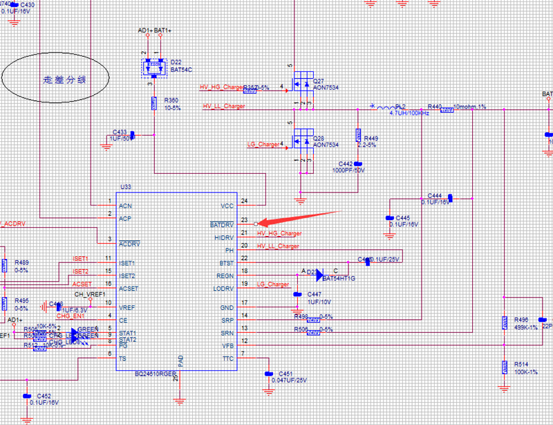 我目前主板上用两颗BQ24610对两个电池做充电,放电我单独加线路做控制,线路上IC的BATDRV(23号)脚是悬空的,这样会有问题吗?会不会有影响?(以下是我电路图)