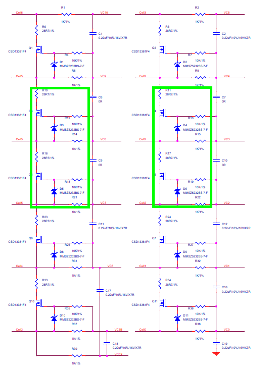 請問  要將 BQ76930 原本10S的板子改成 6S設計,下方的線路圖中,綠色圈選的零件就不需要對吧? 麻請高手指教謝謝
