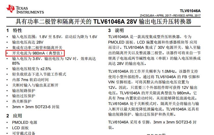 最近在看TLV61046ADBVT这颗芯片,数据手册上标明开关电流为 980mA(典型值),在WEBENCH® Designer TLV61046A中发现Iout最大为680mA;BOOST的输出最大电流应该参考哪一个?或者计算方法是什么?