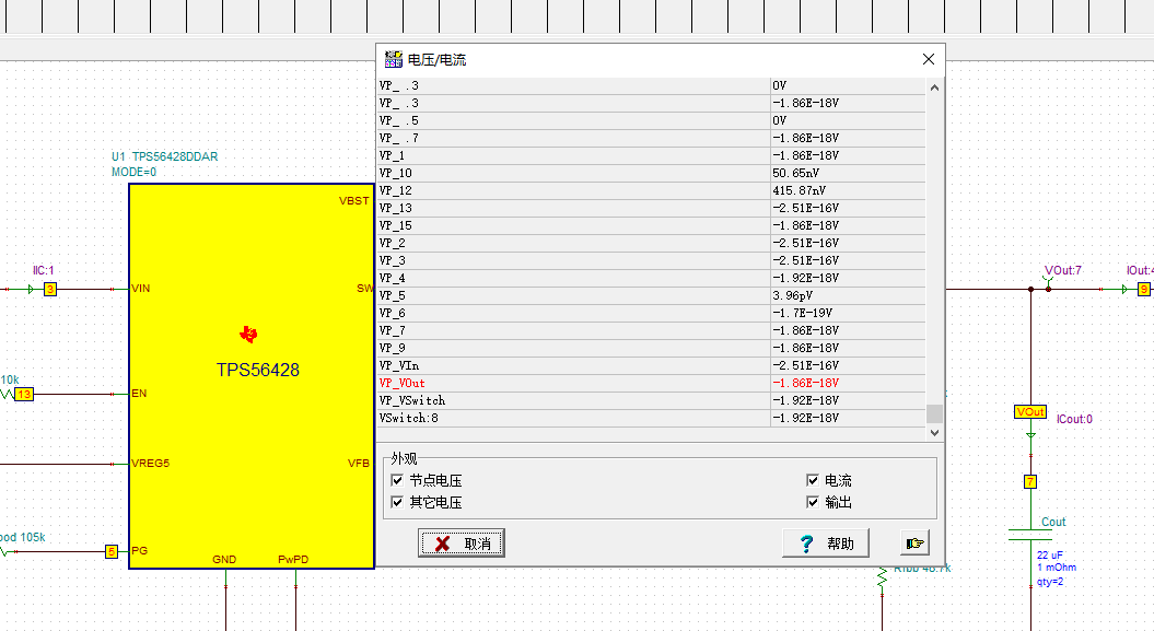 从官网下载的TPS56428的TINA仿真电路,进行直流分析的时候,显示的电压和电流的单位很奇怪,请问是不是哪里需要设置一下?