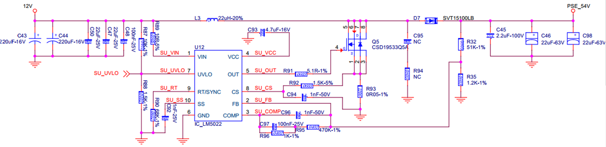 目前正在使用LM5022 设计一个升压电路,单目前遇到散热和效率的问题。项目需求如下:
