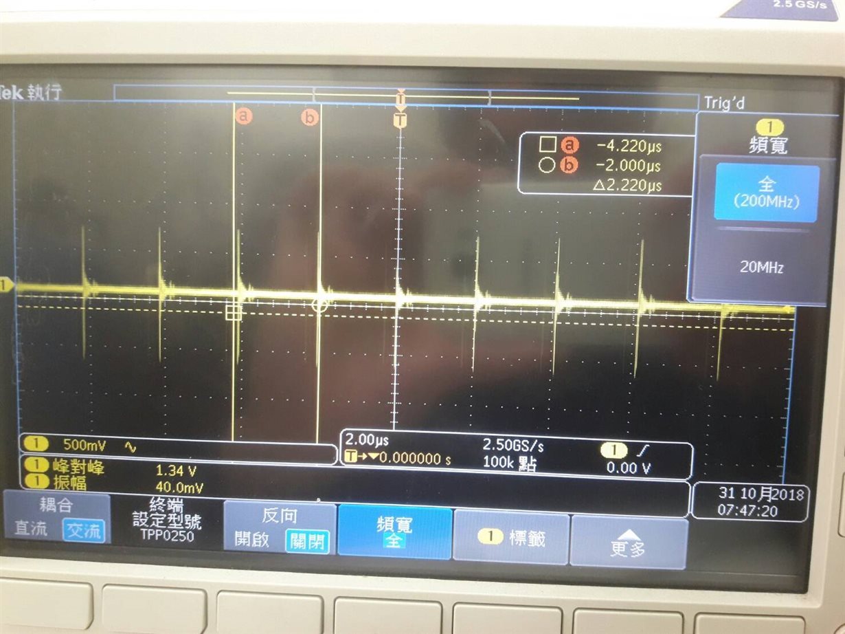 大家好 電路如上,請問我得TPS5410應該只有500kHZ的方波 但出現1.8mHZ的震盪請問原因?
