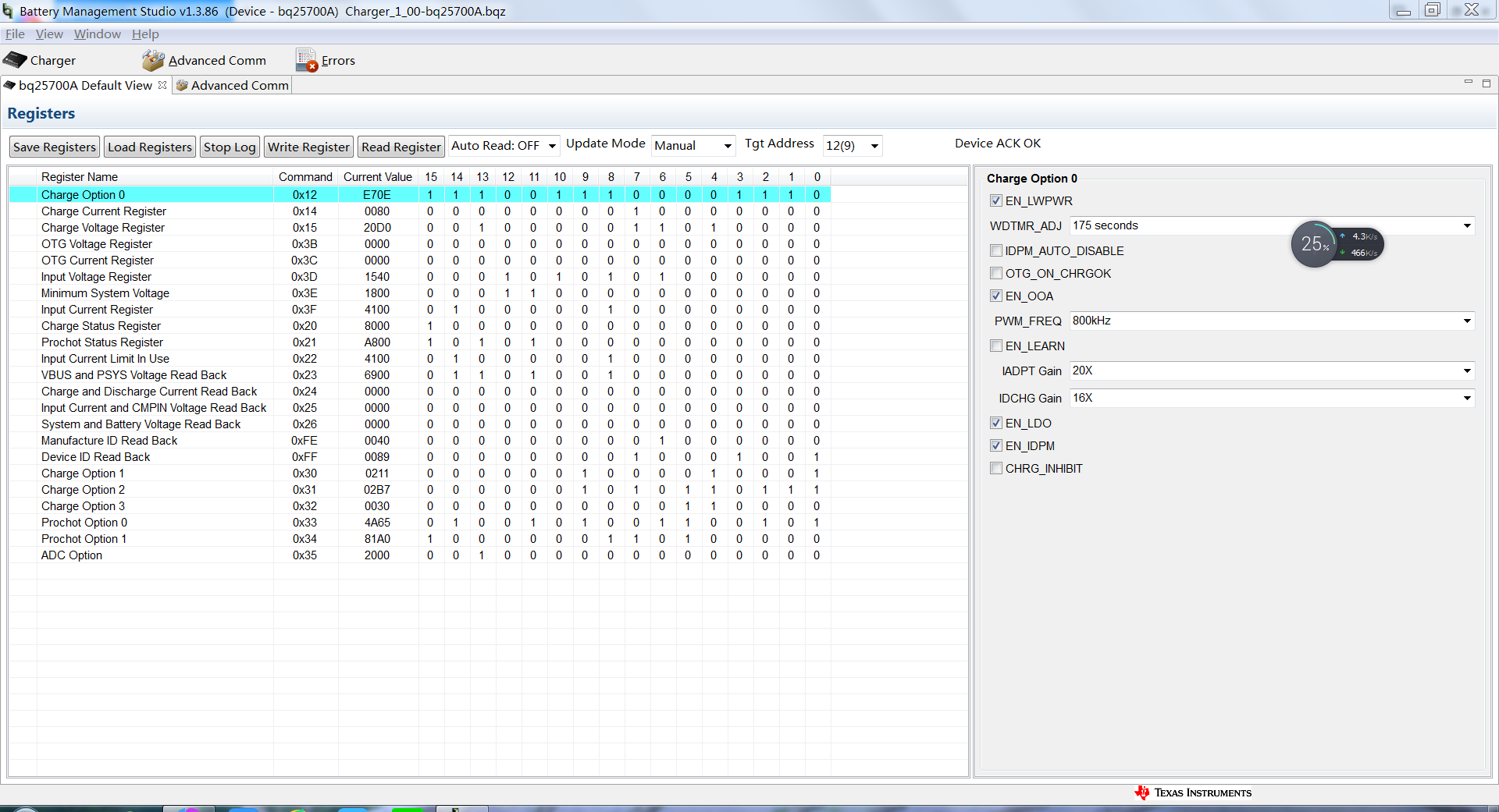 Battery Management Studio软件,通过EV2400烧写器,配置BQ25710的参数均能将参数写入芯片。但是遇到的问题是,每次将电路板断电后重新上电,所有配置的状态参数都无法保存,仍为默认。请问此问题如何解决?