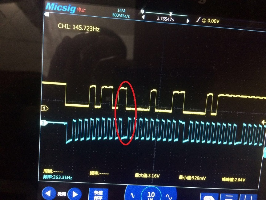 我最近用单片通过SMBUS去读BQ4050寄存器里的值,但是开始写DeviceAddr时,BQ4050就回复NACK,如下图:
