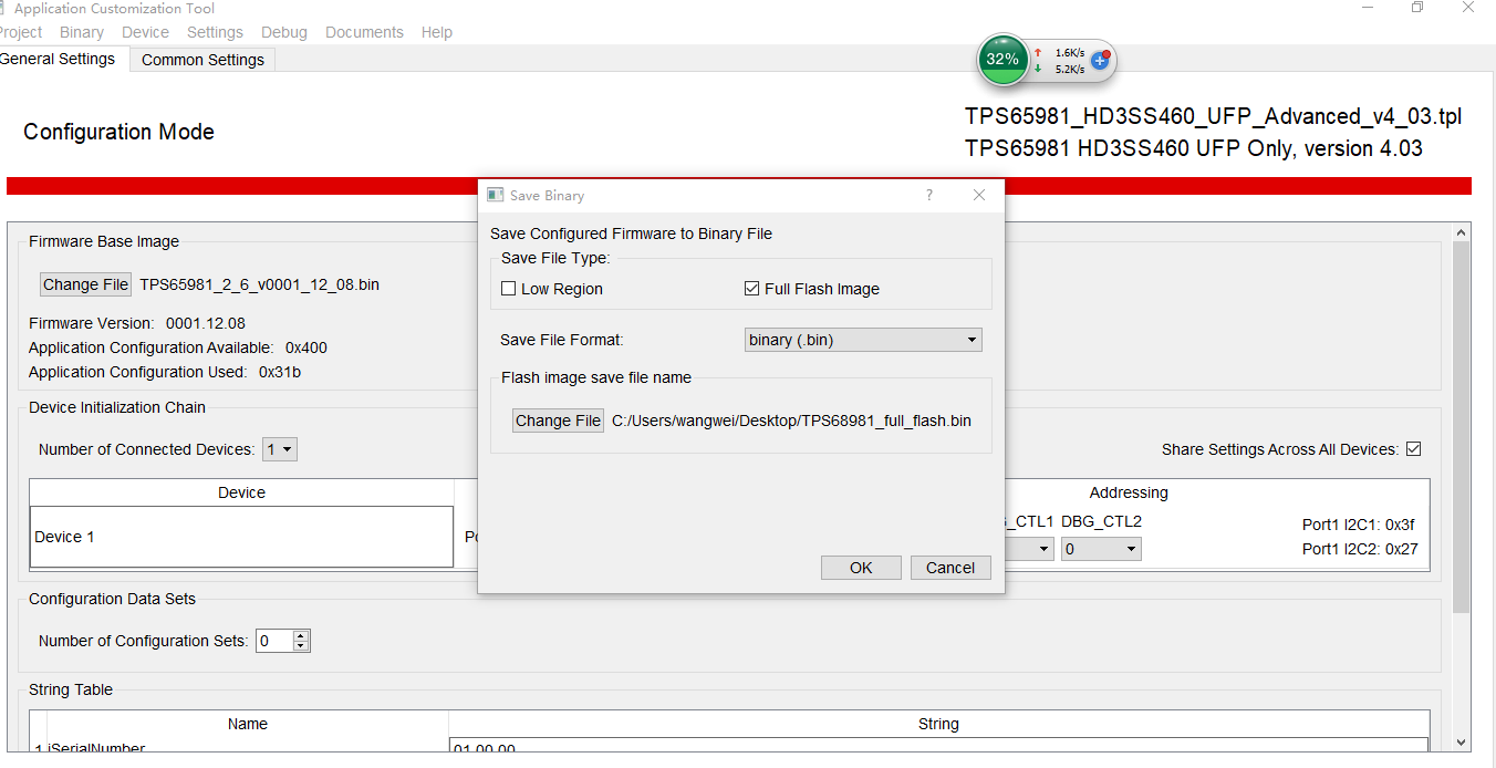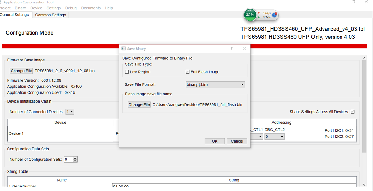 1、我使用TPS6598x Application Customization Tool配置完成之后,生成了 "Full Flash" .bin文件,如下图