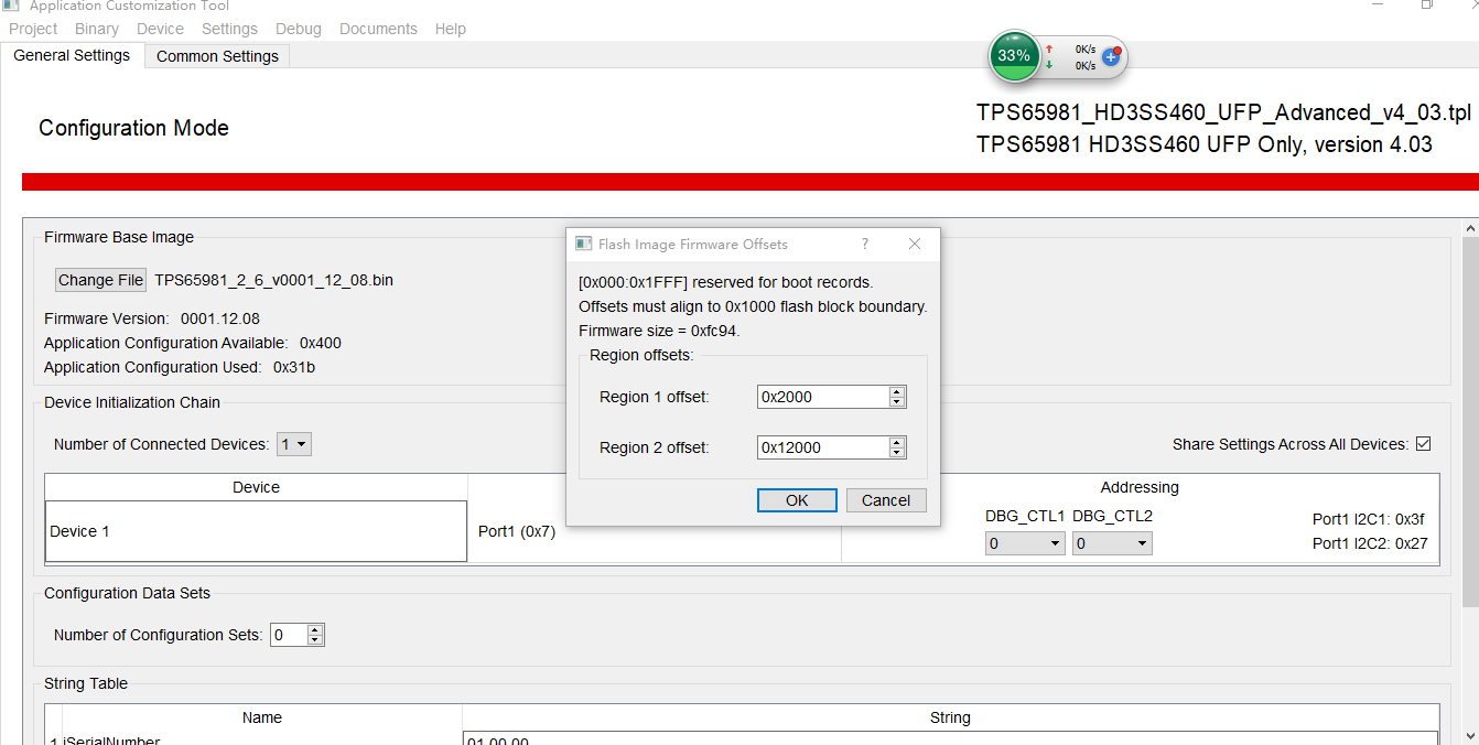 2、保存bin文件的时候,TPS6598x Application Customization Tool提示region 1 offset和region 2 offset怎么设置,是否使用默认的设置0x2000和0x12000?