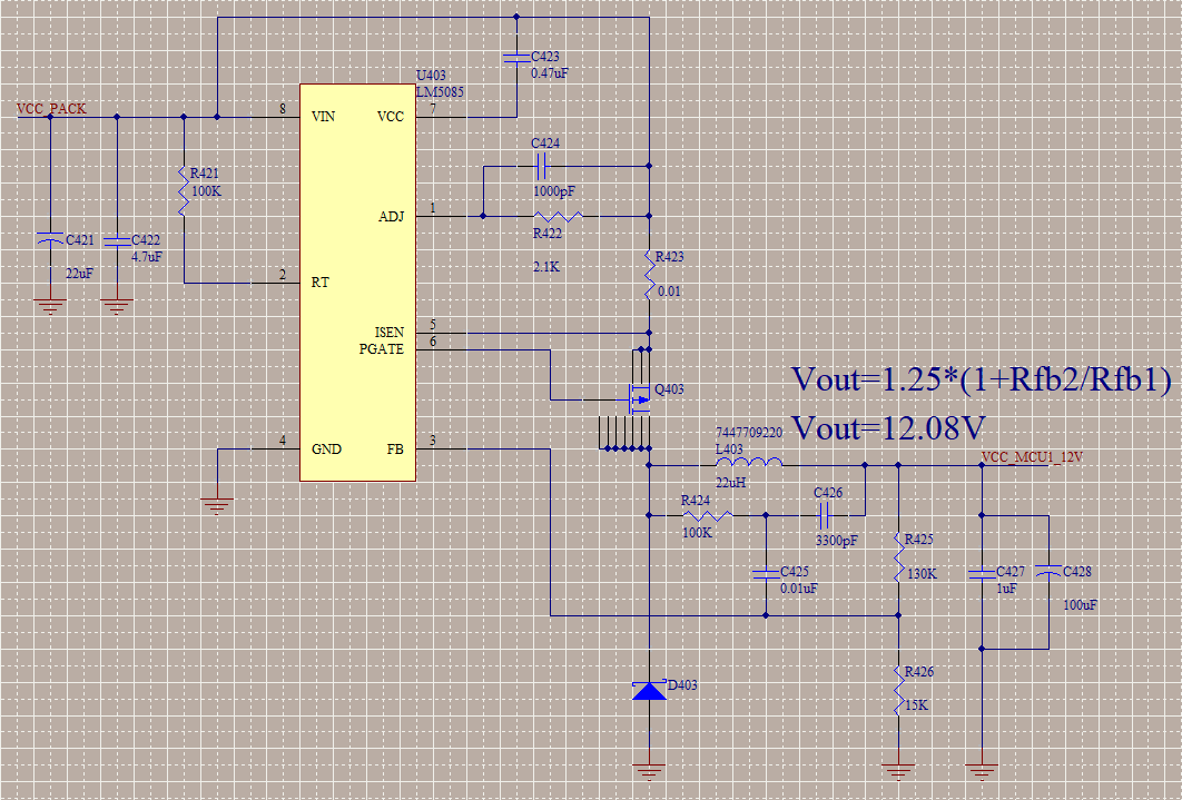更换R426,重新上电,Vout又回到12V,但是,过一段时间之后,Vout还是掉到6V。