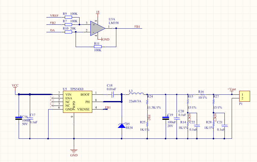 我想问一下,我这样可以做数控电源吗。DA是单片机输出,FB2采样电压。VREF是我想加一个基准电压,但是不知道加在哪里,希望TI好心人,详细看一看,好迷糊