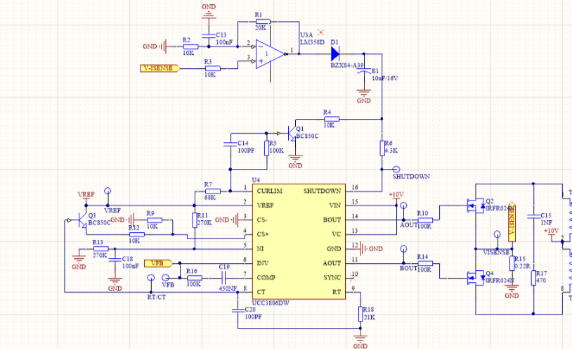 问题:测试的时候供电正常,VREF输出正常。但RT/CT测试点无波形,电压稳定在4.3V左右,RT引脚电压为1.27V与技术手册中1.25V相近。