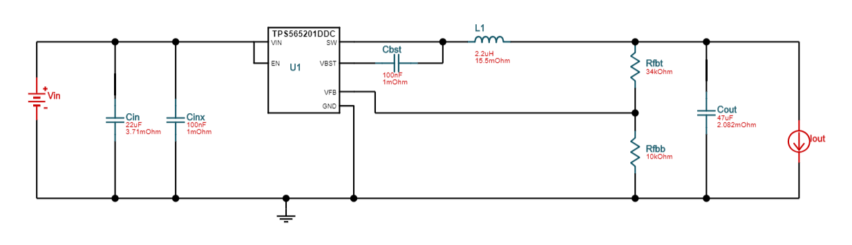 这个是仿真电路,降压输出公式是:Vo=0.760*(1+R1/R2),按理来说R1=33k,R2=10k,应该没什么问题